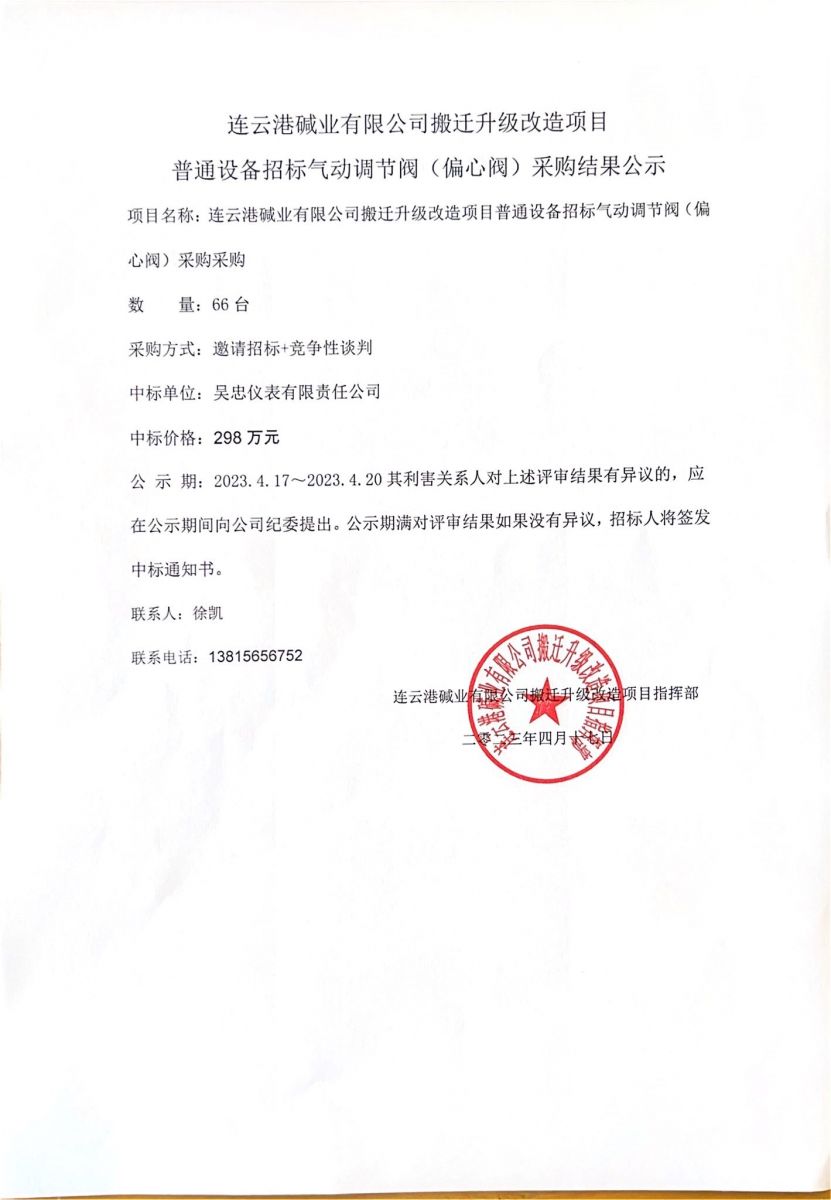 氣動調(diào)節(jié)閥(偏心閥)采購結(jié)果公示