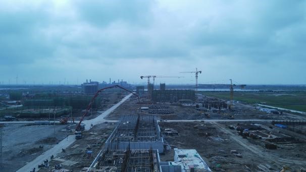 ⑵聯(lián)堿二標(biāo)段611鹽硝車間破樁完成;523結(jié)晶工段框架6~10軸一層梁驗(yàn)收完成;614真空制鹽循環(huán)水站外排水池土方回填;562聯(lián)堿循環(huán)水站框架西側(cè)池壁驗(yàn)收完成,水池破樁;524干銨工段7~12軸一層模板支撐架搭設(shè);503變電所3外架搭設(shè),內(nèi)架開始搭設(shè);525包裝及儲(chǔ)運(yùn)8-16軸梁板模板鋪設(shè)、1-7軸內(nèi)架搭設(shè);506機(jī)柜間1一層梁板柱梯澆筑;601變電所2外架搭設(shè)。