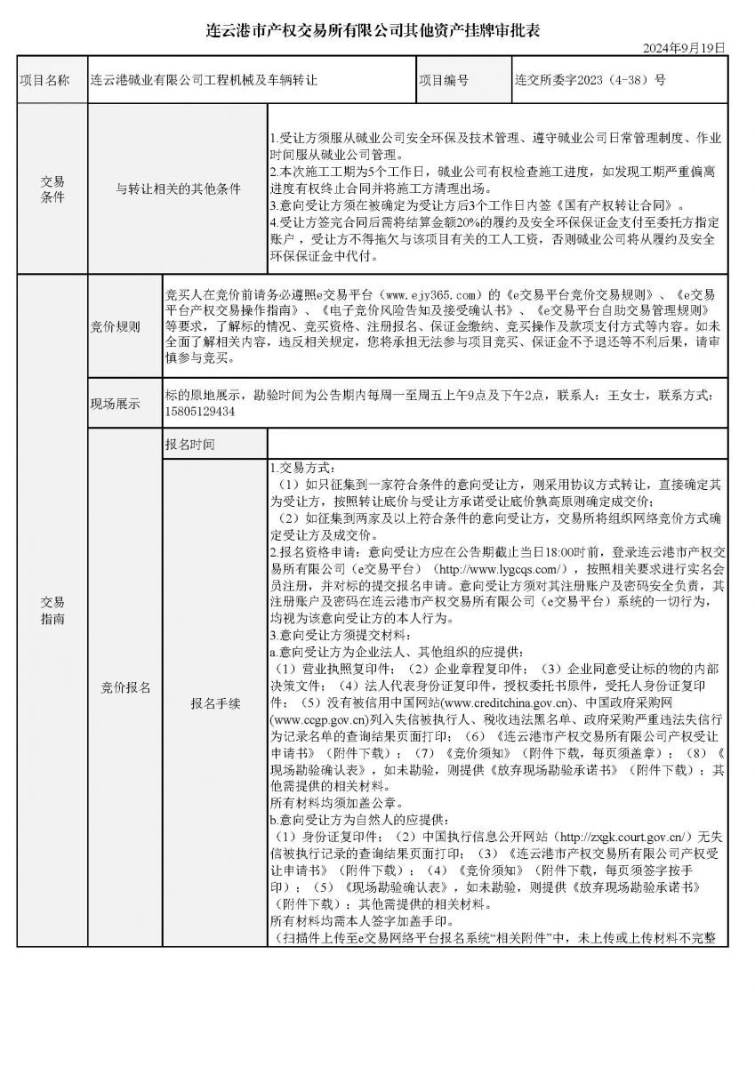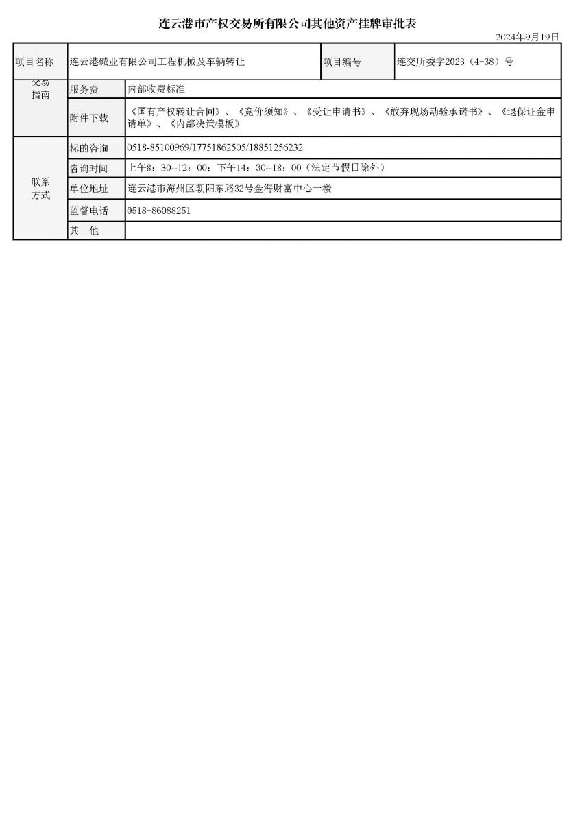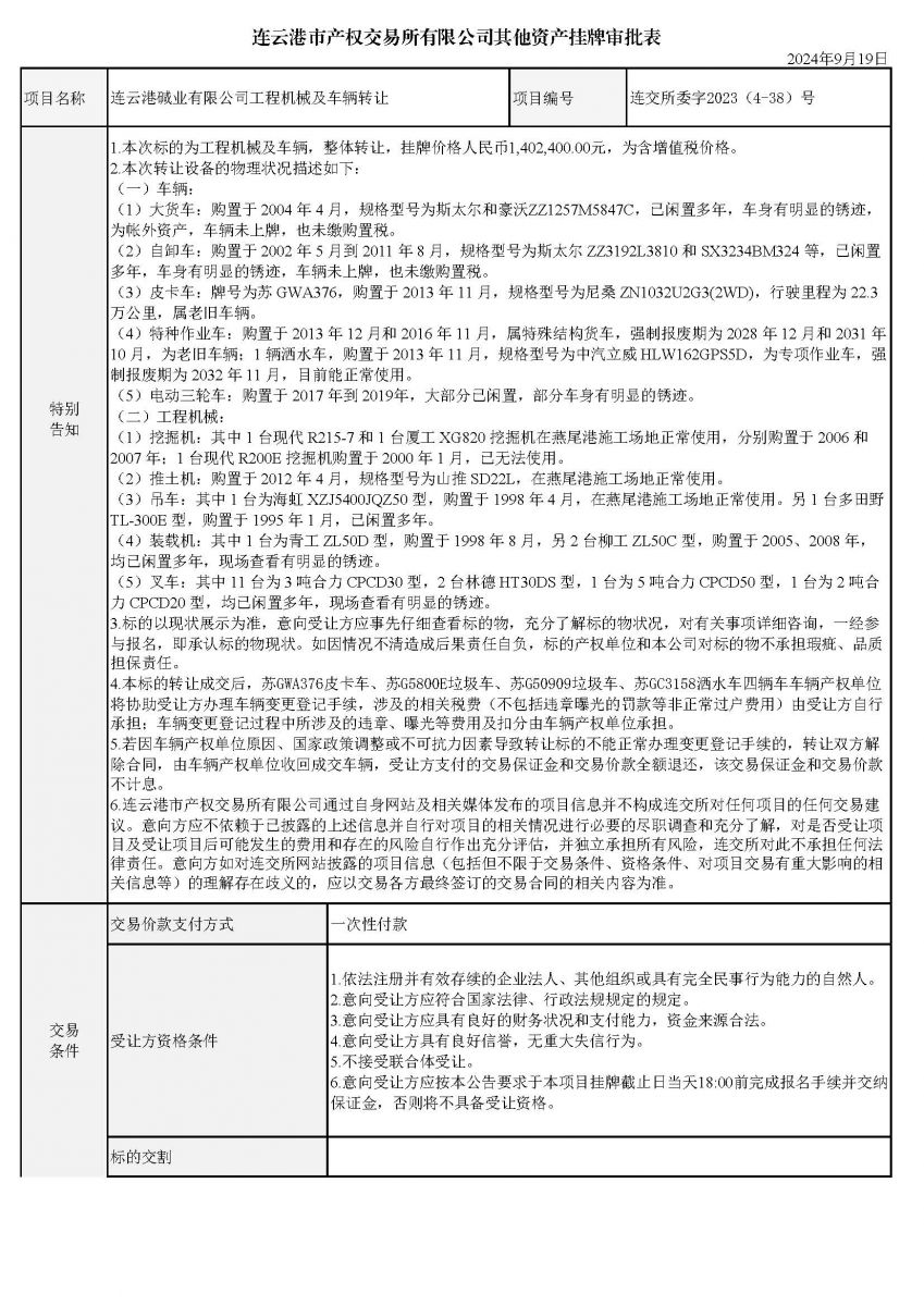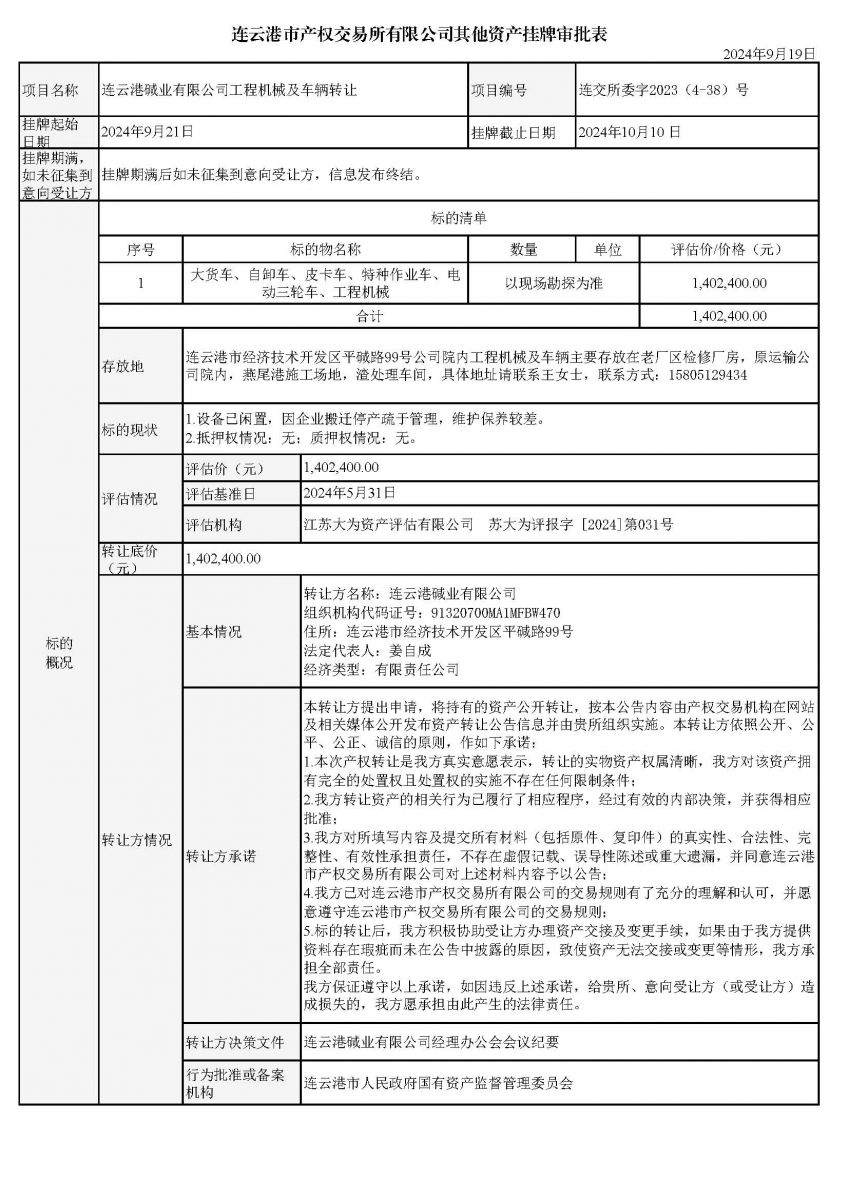 連云港堿業(yè)有限公司工程機械及車輛轉(zhuǎn)讓資產(chǎn)掛牌審批表